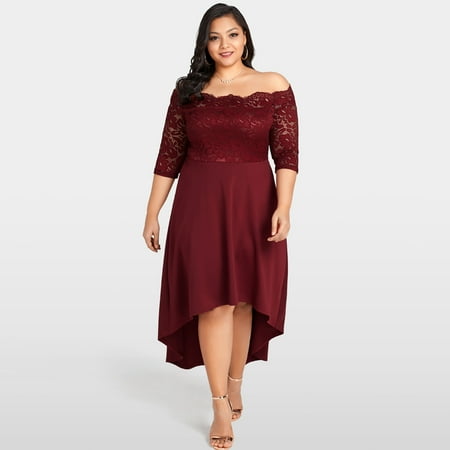 Women Off Shoulder Party Dress Plus Size Lace Scalloped Irregular Hem Nightclub Vestidos Dress Walmart Canada